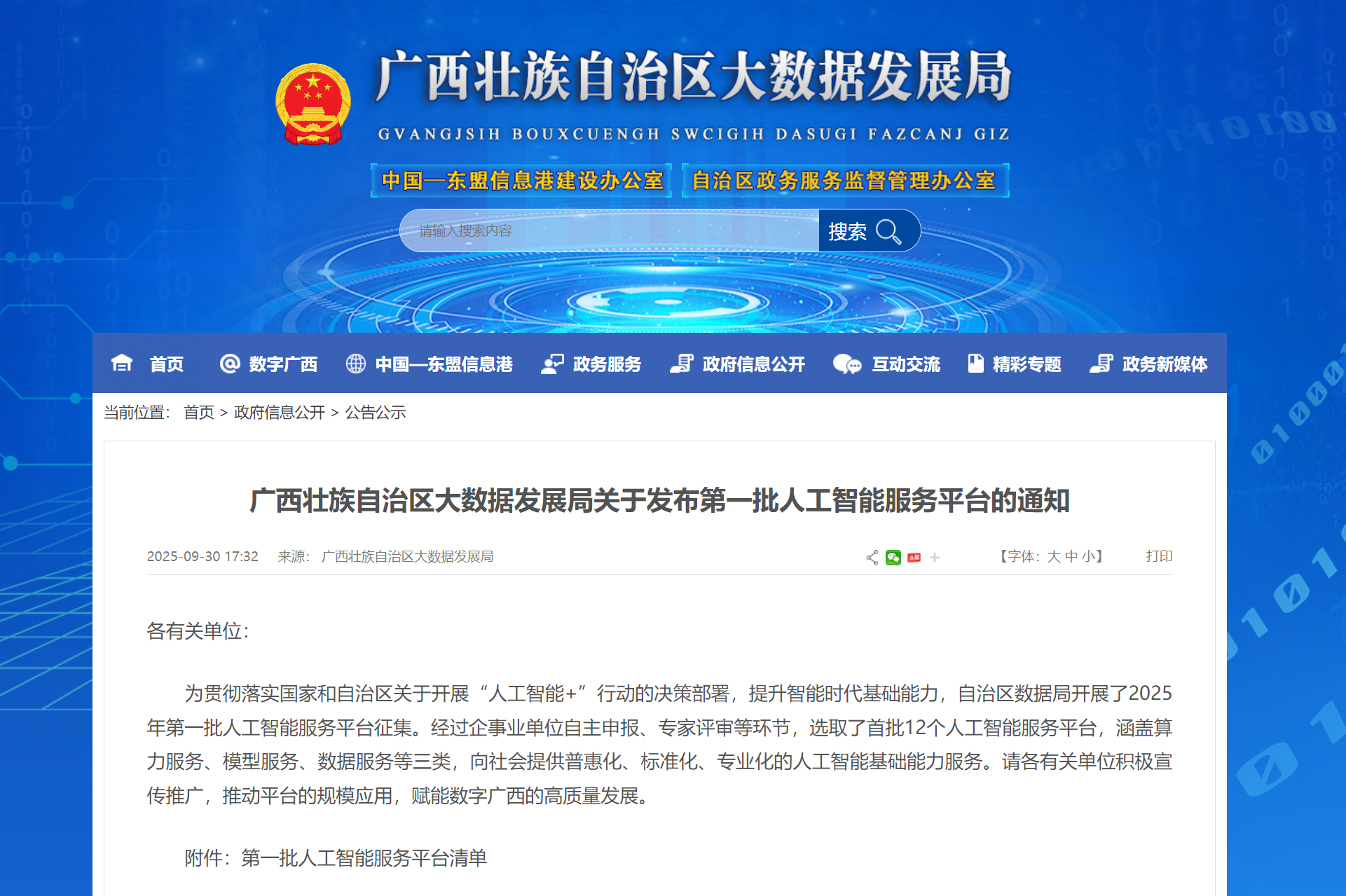 北部灣大數(shù)據(jù)交易中心成功入選廣西首批人工智能服務(wù)平臺名單